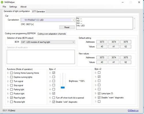 VAG Helper BCM Lighting SGO Coding Tool
